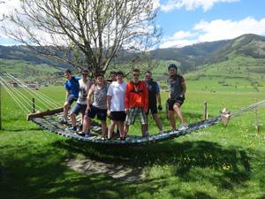 Im Mai fand für die drei 2. Klassen der HAK/HAS Frauenkirchen die traditionelle Sportwoche im Club Kitzsteinhorn in Zell am See statt. Das riesige Jugendhotel bietet Abenteuer pur: Zusätzlich zum täglichen Sportprogramm mit professionellen Trainern (Mountainbiken, Tennis, Klettern und Segeln) gab es Highlights wie Beachvolleyball in 400 Tonnen feinstem Sand, 1200m² Indoor-Kletterwände vom Feinsten, einen gigantischen Hochseilkletterpark über den Köpfen der Ballsportler in der Halle, große In- und Outdoor-Trampoline und vieles mehr! Wer wollte, konnte sich herrlich austoben. Für jene, die in der Freizeit lieber chillen, bietet der Club bequeme Hängematten, Kino und auch einen Pool. Prädikat wertvoll!!! Liebe 1DK und 1EK: Freut euch auf nächstes Jahr!!!