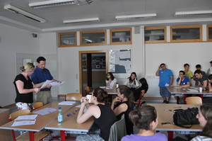 Spielerisches Kennenlernen und sprachliches Miteinander standen beim schulübergreifenden Krimi-Projekt am Mittwoch, dem 25. Juni 2014, in der BHAK/BHAS Frauenkirchen im Vordergrund.
