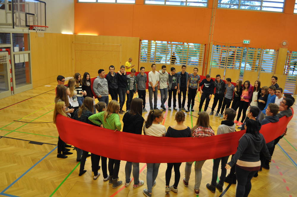 Von Montag bis Mittwoch letzter Woche waren die zwei ersten Jahrgänge mit ihren Klassenvorständen Prof. Edith Roth und Prof. Hannes Schmid sowie Frau Prof. Irmgardt Todt und den ausgebildeten Peermediatoren der vierten und fünften Jahrgänge auf Kommunikationstage im JUFA Leibnitz. Durch die vielen Outdoor- Übungen, Gruppenarbeiten und Spiele die von unseren Schulmediatoren Prof. Todt und Prof. Schmid sowie den Peers geleitet wurden, konnte ein „Wir-Gefühl“ entwickelt werden. So mussten die Klassen durch ein Spinnennetz gehoben werden, blind in der Gruppe bis 30 zählen und ein eigenes Wappen entwerfen. Unisono musste festgestellt werden, dass die 3 Tage viel zu kurz, das Essen hervorragend und die Zimmer wunderschön waren.