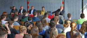 Am 27. April fand aus Anlass der Burgenländischen Landtagswahl eine Schuldiskussion an unserer Schule statt. Die Schüler/innen nutzten die Möglichkeit, an die Vertreter der politischen Parteien ihre Fragen zu stellen und sich so ein Bild von den jeweiligen Standpunkten zu machen. Moderiert wurde die Veranstaltung von Elisabeth Pauer vom ORF Burgenland. Folgende Personen saßen am Podium: LH Hans Niessl (SPÖ), Klubobmann Rudolf Strommer (ÖVP), Manfred Haidinger (FPÖ), Regina Petrik (Grüne) und Rouven Ertlschweiger (LBL).