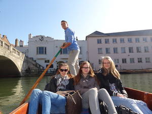 Am 8. April 2015 traten die Schüler der dritten Klassen eine achttägige Sprachreise nach Cambridge (England) an. Die Schüler waren in Gastfamilien untergebracht und wurden vormittags in Gruppen von einheimischen Lehrern unterrichtet, so konnten sie ihre bereits vorhandenen Sprachkenntnisse unter Beweis stellen und allerhand Neues dazulernen. Doch nicht nur sprachliches, sondern auch landeskundliches und kulturelles Wissen sollte vermittelt werden, deshalb standen zahlreiche Ausflüge auf dem Programm. Der Stadtrundgang durch die Universitätsstadt Cambridge führte uns an einigen der zahlreichen Colleges vorbei, nebenbei erfuhren wir Interessantes über wichtige historische Ereignisse. Je einen Tag verbrachten wir in London und in Oxford. Ein weiterer Ausflug führte in das malerische Dorf Ely, wo es eine wunderschöne Kathedrale zu besichtigen gibt. Was die Engländer unter Cream Tea verstehen wurde uns im Hilton Hotel nicht nur erklärt, sondern auch serviert: leckere Scones, dazu Kaffee oder Tee. Schließlich gab es am letzten Abend noch Gelegenheit zum gemeinsamen Bowlen im Freizeitzentrum von Cambridge. Den Tag der Abreise konnten wir gemütlich ausklingen lassen, bei strahlendem Sonnenschein gab es eine Bootsfahrt am River Cam.